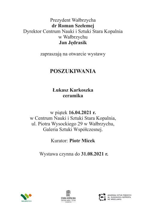 Ekspozycja będzie czynna od 16.04 do 31.08. 2021 r. w Centrum Nauki i Sztuki STARA KOPALNIA, ul. Piotra Wysockiego 29, Wałbrzych.