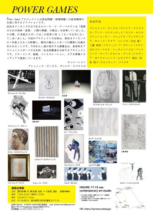 Głównym wydarzeniem projektu była wystawa Power Games w galerii Higure 17-15 Cas Gallery, którą poprzedzały akcje w Kanazawa Park w Tokio. Projekt w założeniu odnosił się do kwestii upolitycznienia i komercjalizacji sportu, będąc komentarzem przed zbliżającymi się Igrzyskami Olimpijskimi w Tokio w 2020 roku. Kanazawa Park to miejsce w którym miały się odbywać główne wydarzenia olimpiady w Tokio w 1940 roku, jednak z przyczyn politycznych igrzyska zostały odwołane. Następne wydarzenia mniej i bardziej powiązane z projektem zostały zrealizowane w Kioto: projekt Dotyk / Touch w ponad stuletnich wnętrzach pawilonu Yumeji Nishijin i innych miejscach w Kioto, oraz spotkania, pokazy i performance w Galerii Lumen dla studentów i wykładowców uniwersytetu Ritsumekan w Kioto.