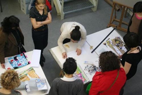 English version » W zajęciach uczestniczyły Justyna Gałązka, Diana Karpowicz, Marta Kubiak, Monika Marek, Aleksandra Matyas, Barnaba Mikułowski, Aleksandra Niemiec, Katarzyna Nowak, Katarzyna Wesołowska, Katarzyna Wojdyła, Malwina Wiśniewska. Celem projektu było poznanie oraz zrozumienie tradycji i sposobu życia ludzi żyjących w innych kulturach. Pierwszego dnia dyskutowaliśmy o naszych ojczyznach, odkrywaliśmy różnice i podobieństwa naszych kultur, które pomogły zrozumieć nam ich bogactwo. Pozajęciach udaliśmy się do Galerii za Szybą, gdzie miało miejsce otwarcie wystawy prac z Uniwersytetu Anadolu. Drugiego i trzeciego dnia przystąpiliśmy do realizacji projektu mającego na celu zbudowanie książeczek ze zwizualizowaną przez nas tradycją bądź historią związaną z Polską. Tworzenie naszych obiektów rozpoczęliśmy od zaprojektowania arkusza papieru formatu A3, następnie złożyliśmy go według podanego wzoru i uzyskaliśmy ośmiostronicową książeczkę. Na tak złożonym obiekcie mogliśmy dalej pracować, uzupełniać go dodatkowymi ilustracjami bądź typografią. Jest toniezwykle ciekawy sposób tworzenia książki, myślę, że z chęcią wrócimy do niego w przyszłości, gdyż jest bardzo wygodny i pomocny zwłaszcza w pierwszej fazie tworzenia książki, my natomiast przywykliśmy do projektowania tzw. ‘strona po stronie’. Dodatkowo większość z nas zdecydowała się na realizację projektu techniką kolażu, w związku z tym, przynajmniej przez tych parę dni, mogliśmy odpocząć od pracy na komputerze. Ostatniego dnia przedstawiliśmy wyniki naszej pracy, co było bardzo interesujące, ponieważ zarówno historie i techniki użyte w naszych ksiazkach byly zróżnicowane i atrakcyjne. Warsztaty były zarówno inspirujące, jak i rozwijające, dlatego mamy nadzieję na częstsze spotkania z przedstawicielami innych kultur. Relację z warsztatu przygotowała Aleksandra Niemiec, zdjęcia wykonał Artur Skowroński English version Binding Cultures: A workshop of Intercultural Thinking Through Experimental Bookmaking. From 22nd to 25th of April a workshop entitled "Binding Cultures: A workshop of Intercultural Thinking Through Experimental Bookmaking" was organised at our Academy. It was run by Ms F. Gonca Ilbeyi Demir and Ms Melike Tascioglu from the Anadolu University Faculty of Fine Arts in Turkey. The participants were our students, Katarzyna Wojdyła, Marta Kubiak, Aleksandra Niemiec, Monika Marek, Justyna Gałązka, Diana Karpowicz, Katarzyna Nowak, Barnaba Mikułowski, Aleksandra Matyas, Katarzyna Wesołowska, Malwina Wiśniewska. The aim of this project was getting acquainted with traditions and lifestyles of people living in different cultures to be able to understand them better. On the first day we talked about our countries discovering the similarities and differences between our cultures, which helped us realise how rich they are. After the discussion we went to an art gallery, Galeria za Szybą, where the exhibition presenting artworks from the Anadolu University Faculty of Fine Arts was opened. On the second and third days we were doing the project, whose aim was to make a book visualising a tradition or event connected with Polish history. The first stage of our work was to create a design on an A3 size sheet of paper. Then we folded the paper according to the instruction to make an eight-page booklet. We continued our work on the folded booklet, adding illustrations or typographic components. That was a very interesting way of making a book, so I think that we will use it in the future, because it's very helpful and convenient in the first phase of creating a book. Before we used to design our books page by page. Additionally, most of us decided to use the technique of collage, we cut out and stuck together elements, we also painted and drew, so we had a break from the work on computer for a couple of days. On the last day we presented the results of our work, which was very interesting because both the stories and techniques used in our books were varied and attractive. The workshop was inspiring as well as instructive, so we look forward to meeting representatives of different cultures more often in the future. Text: Aleksandra Niemiec, foto: Artur Skowroński