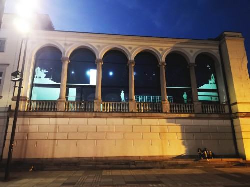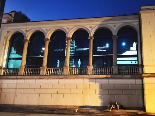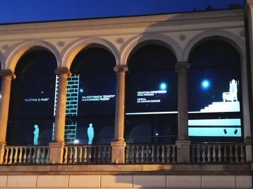 W ramach przedmiotu dr Damiana Banasza, prowadzącego z Katedry Scenografii , studenci Nina Mizgała i Sebastian Siepietowski przygotowali projekcję, która została wyświetlona na fasadzie Muzeum Teatru.