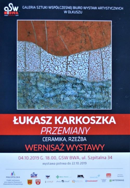 Zapraszamy na wystawę dr Łukasza Karkoszki (Wydział CiSZ) "Przemiany- ceramika, rzeźba" do Galerii Sztuki Współczesnej BWA w Olkuszu.