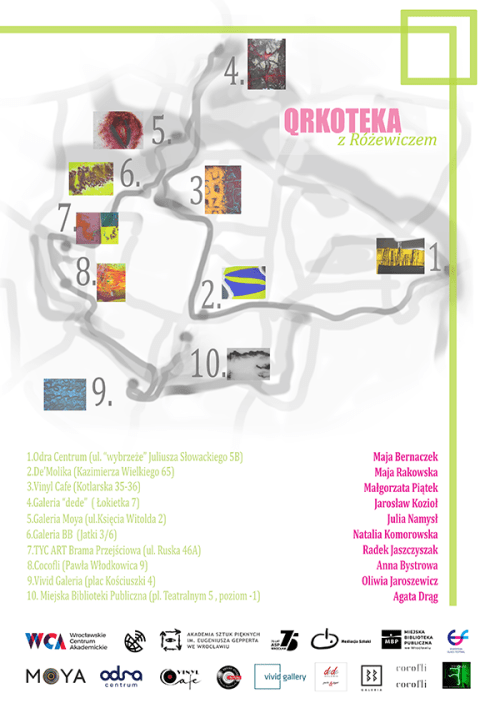 Współpracujące miejsca i galerie we Wrocławiu: Odra Centrum, De'Molika, TYC ART Brama Przejściowa, Galeria "dede" , Vivid Galeria Galeria BB, Cocofli, Miejska Biblioteki Publiczna Galeria Moya, Vinyl Cafe