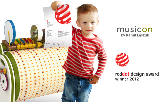Nagroda Red Dot nazywana jest Oskarem w świecie projektowania, dlatego zwycięstwo Kamila Laszuka w kategorii Design Concept cieszy szczególnie. MusicOn – praca dyplomowa Kamila była wyróżniana wielokrotnie, między innymi w przeglądzie Graduation Projects i Jak widać dobra passa sprzyja młodemu projektantowi. Jego edukacyjna, interaktywna zabawka dla dzieci, zbudowana na zasadzie katarynki, oprócz nagrody Red Dot otrzymała też nagrodę w konkursie CORE77 2012 w Nowym Jorku.