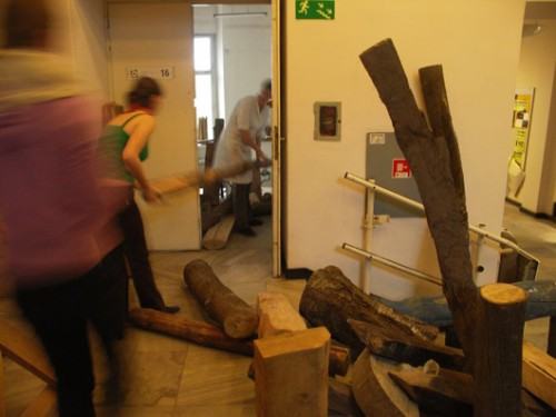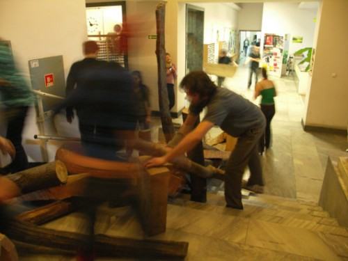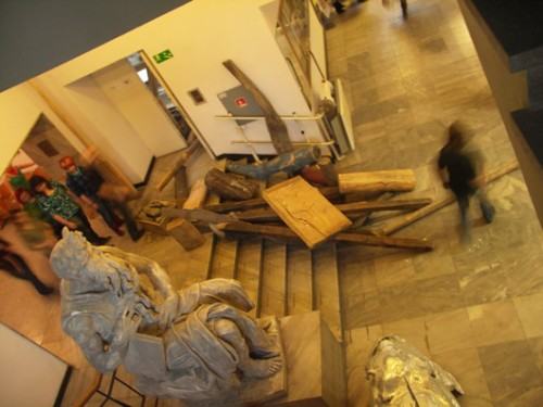 Wszystko zaczęło się od zwykłego sprzątania.....które w rezultacie zmieniło się w happening , studenci przewlekali, taszczyli, targali, przenosili, dźwigali fragmenty rzeźb.