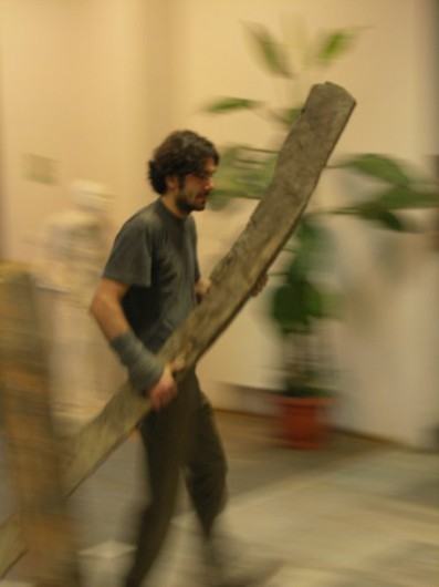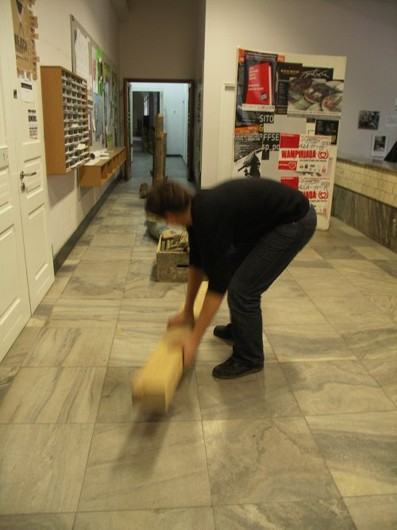 W piątek na parterze budynku ASP przy pl. Polskim zajmowanym przez pracownie rzeźbiarskie odbyła się spontaniczna akcja przemieszczania rzeźby. Wszystko zaczęło się od zwykłego sprzątania, które jednak w rezultacie zmieniło się w happening: oto studenci z pracowni rzeźby prowadzonej przez Marię Wrońską, Tomasza Opanię oraz Tomasza Niedziółkę przewlekali, taszczyli, targali, przenosili, dźwigali fragmenty rzeźb. Prowadzący czynili korekty, nadawali tempa całej akcji, tudzież, wraz ze studentami, animowali powstałą mobilna rzeźbę, która wypełzła z pracowni nr 4, przewędrowała przez cały korytarz na parterze, wpełzła po schodach, po czym spoczęła w pracowni nr 16. Zapraszam na fotorelację ze zdarzenia – Tekst i zdjęcia Magda Grzybowiska.