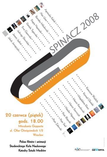Spinacz' 2008 jest prezentacją działań filmowych i multimedialnych młodych artystów-studentów Wrocławskiej Akademii Sztuk Pięknych, członków oraz sympatyków (entuzjastów nowych mediów) Studenckiego Koła Naukowego Katedry Sztuki Mediów. Prezentowane prace mają charakter wędrówek medialnych, w czasie których stykają się różne warstwy procesów technologicznych i obserwacje rzeczywistości realnych i umownych. Techniki filmowe i medialne, oprócz działań kierunkowych, są także narzędziami poszerzającymi możliwości warsztatowe – malarskie, graficzne... z ich klasyczną wysublimowaną estetyką. Ireneusz Olszewski