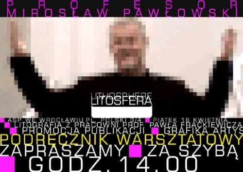 Zapraszamy na wykład i pokaz prof. Mirosława Pawłowskiego z poznańskiej ASP pt: "Jak to się robi czyli o projektowaniu książek o sztuce, na podstawie publikacji Grafika Artystyczna, Podręcznik Warsztatowy". Spotkanie połączone będzie z finisażem wystawy "Litosfera".