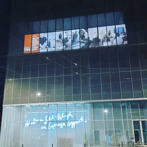 Koniecznie będąc wieczorową porą w okolicach Centrum Sztuk Użytkowych. Centrum Innowacyjności unieście głowy do góry, by móc podziwiać ożywioną fasadę budynku.