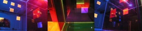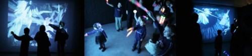 Wystawie towarzyszy atrakcyjny program filmów animowanych. Wystawa trwa od 29 lutego do 30 marca 2008 r. od wtorku do soboty w godzinach 10:00-18:00, w niedziele od 12:00 do 16:00. 1. RGB (Red, Green, Blue) Przestrzenna aranżacja dziewięciu sześcianów wykonanych z przezroczystego tworzywa w podstawowych barwach czerwonej, zielonej i niebieskiej oraz odpowiedniego oświetlenia. Obiekt jest wielkoformatową prezentacją addytywnej metody mieszania kolorów opierającej się na fizjonomii oka ludzkiego. W pewnym sensie nawiązuję też do początków mediów. Model RGB miał bowiem pierwotne zastosowanie do techniki analogowej. W oparciu o tę metodę pracowały i wciąż pracują monitory, emitując wiązki świateł RGB. Główną ideą ekspozycji jest zabawa w poszukiwanie koloru. Dzieci, przechodząc pomiędzy różnokolorowymi obiektami obserwują przenikanie i mieszanie się barw. Obserwowanie zjawiska będącego wynikiem wzajemnego oddziaływania poszczególnych sześcianów dostarcza im radości płynącej z odkrywania szerokiej gamy niuansów i refleksów kolorystycznych. Dodatkowe użycie kalejdoskopów daje możliwość kadrowania oraz głębszego eksplorowania widzianego obrazu. 2. Zabawa graficzna Perspektywa - to animacja komputerowa oraz cztery plansze zawierające ruchome elementy. Manipulując elementami dzieci zmieniają ich kontekst w przestrzeni, dzięki czemu poznają zasady perspektywy linearnej i sposoby odwzorowania trójwymiarowej rzeczywistości na płaskiej powierzchni. 3. Instalacja Faktury - system detekcji ruchu zarejestruje dłoń położoną na jedną z pięciu powierzchni o różnych fakturach (kamienie, woda, para, kora, trawa), uruchamiając wielkoformatową projekcję wizualno – dźwiękowej animacji odpowiadającej danej fakturze. 4. Malowanie światłem - gesty dzieci bawiących się świecącymi zabawkami (latarki, lampki choinkowe) są rejestrowane przez system śledzenia ruchu. Za pomocą specjalnego oprogramowania informacja o historii ruchu zostaje w interaktywny sposób przełożona na obraz i dźwięk. Dominika Sobolewska