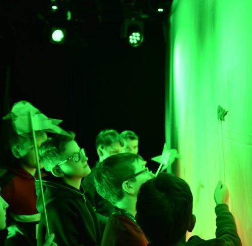 Zajęcia prowadzone były przez dr Damiana Banasza, adiunkta na kierunku scenografia. Temat ćwiczeń to „Jak stworzyć bohatera przedstawienia teatralnego" a wykorzystany wiersz Jana Brzechwy „Ptasie plotki", posłużył do wykreowania zadania. Mali studenci podczas wizyty dowiadywali się jak wygląda teatr i jakimi środkami plastycznymi funkcjonuje, w tym teatr cieni. Zajęcia odbywały się w Laboratorium Teatralnym Teatr 313, a do prezentacji tematu wykorzystano nowoczesne oświetlenie sceny.