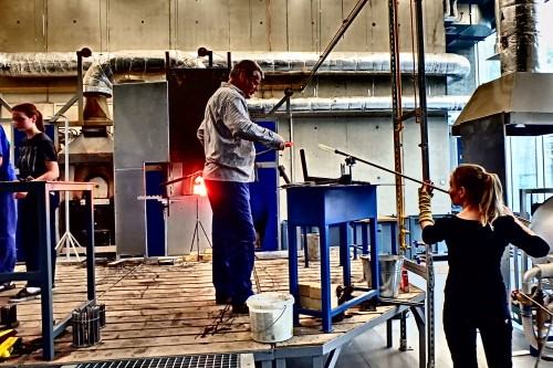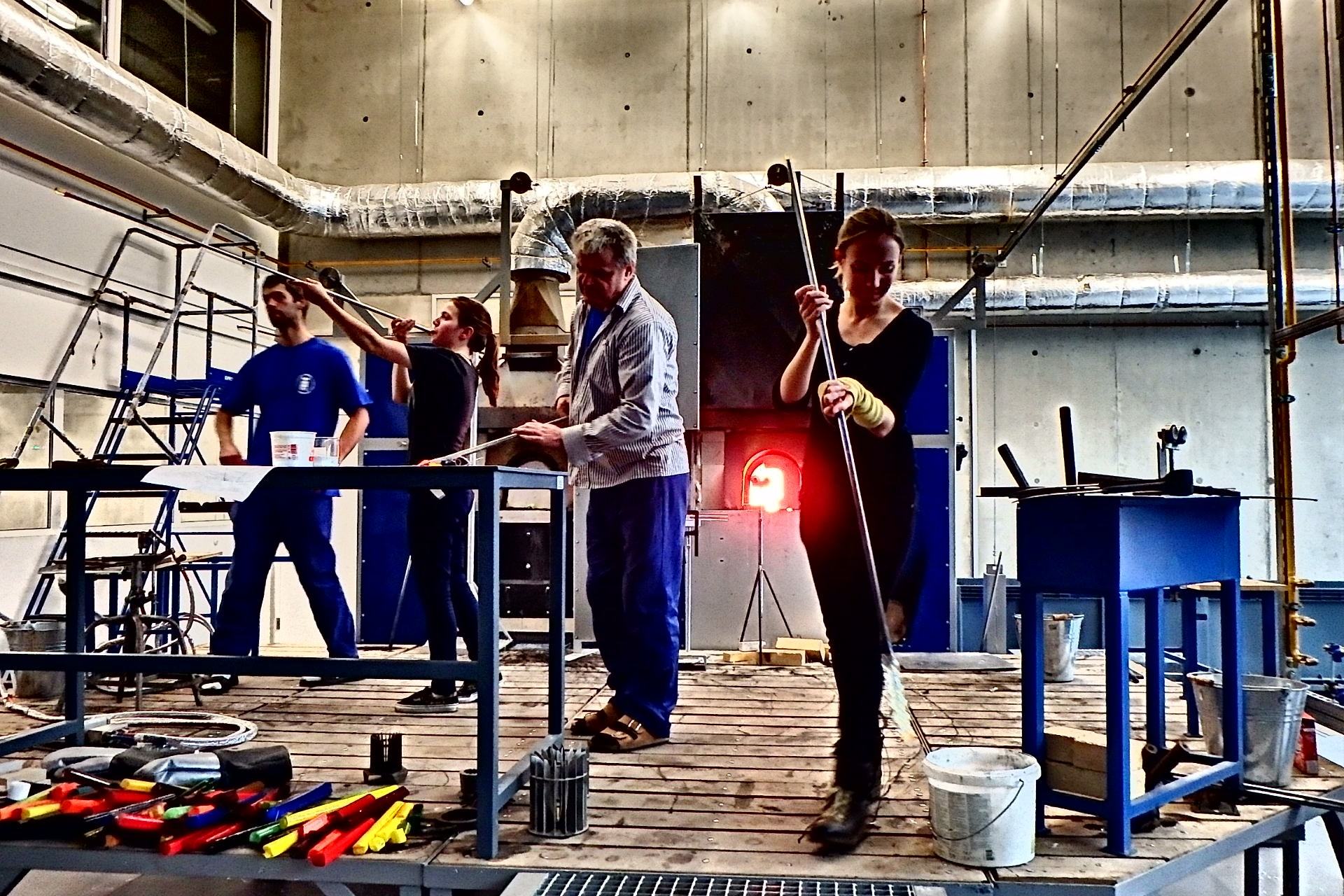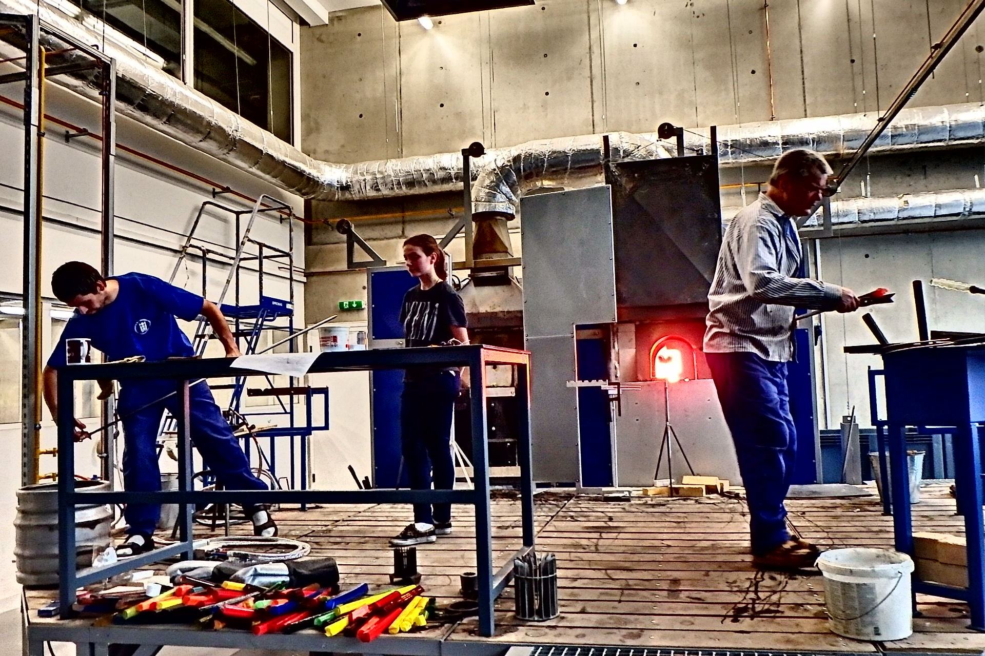 Od połowy listopada, studenci z Katedry Szkła, podzieleni na zespoły, pracują przy piecu hutniczym pod bacznym okiem profesjonalistów.