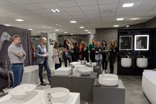 Studenci odbyli w obydwu firmach szkolenia branżowe – ich głównym celem było zaprezentowanie uczestnikom aktualnego asortymentu, którym w przyszłości będą mogli posługiwać się jako projektanci, oraz zdobycie wiedzy dotyczącej produkcji ceramiki sanitarnej podczas śledzenia tajników całego procesu produkcyjnego.