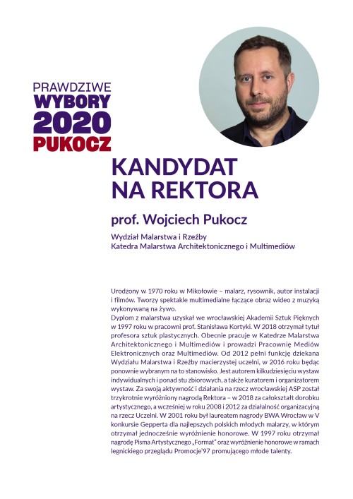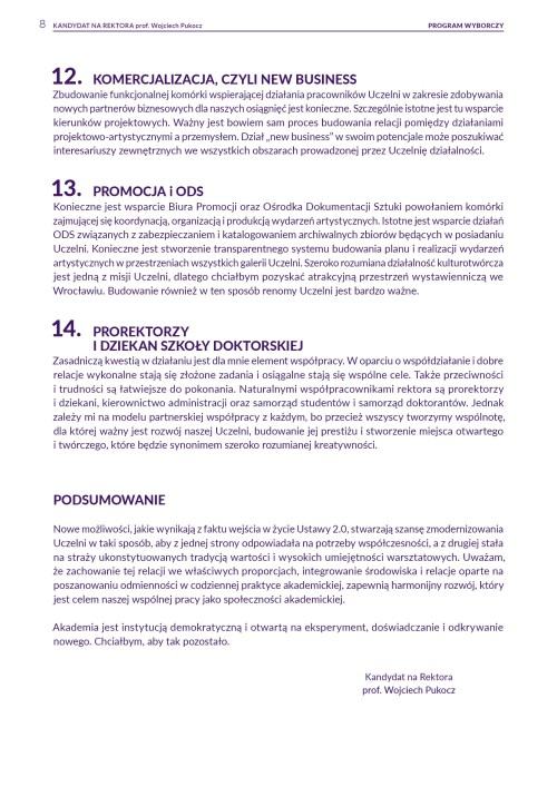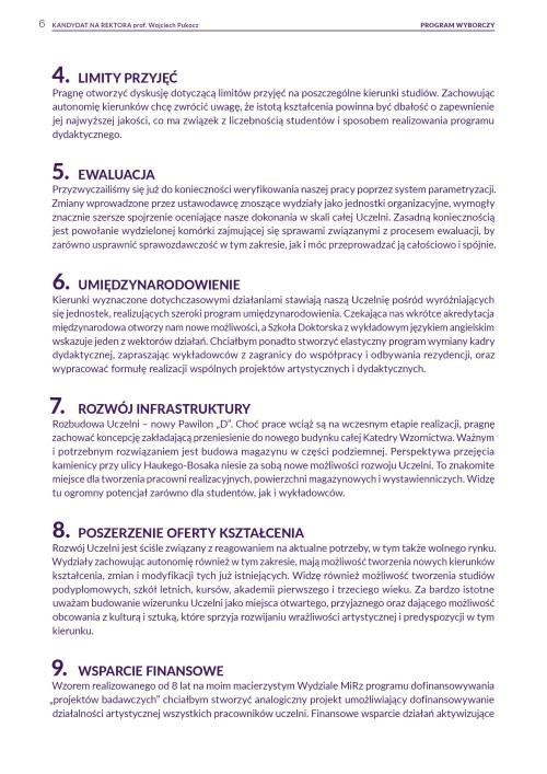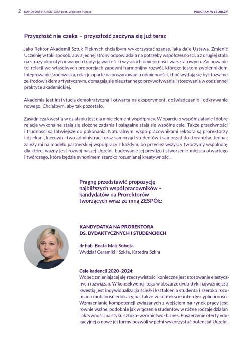 Ścieżka nawigacyjna ASP Aktualności Wybory na Rektora ASP - wybory odwołane / przełożone Ogłoszenie Opublikowano 08 mar 2020 Zapraszamy do zapoznania się z programem wyborczym kandydata na rektora - prof. Wojciecha Pukocza.zamieściła AZG Pliki do pobrania WYBORY_program_W.Pukocz.pdf pdf, 629.75 KB WYBORY_program_W.Pukocz.pdf Program wyborczy - prof. W. Pukocz Pozostałe aktualności Komunikat W tym tygodniu na ASP Przegląd wydarzeń 8–14.12.2025 08 gru 2025 Czytaj więcej o W tym tygodniu na ASP Fotorelacja Marek Grzyb, Mimikra czasu W witrynie - Galerii ZPAP przy ul. 08 gru 2025 Czytaj więcej o Marek Grzyb, Mimikra czasu Ogłoszenie Rozstrzygnięcie konkursu na pieczątkę-ekslibris 33. Wrocławskich Targów Dobrych Książek 2025! Wernisaż połączony z wręczeniem nagród i dyplomów odbędzie się w piątek 05.12. o godz. 16.00 w Hali Stulecia w przestrzeni między stoiskami 97 i 98. 04 gru 2025 Czytaj więcej o Rozstrzygnięcie konkursu na pieczątkę-ekslibris 33. Wrocławskich Targów Dobrych Książek 2025! Ogłoszenie Návštěvníci / Zwiedzający Zapraszamy do Gabloty przy Rektoracie na wystawę prac są studentów Katedry Edukacji Artystycznej Uniwersytetu Palackiego w Ołomuńcu. 04 gru 2025 Czytaj więcej o Návštěvníci / Zwiedzający