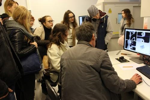 Studencka delegacja z ASP odwiedziła m.in. Laboratorium Badań Nieniszczących, budynek z laboratoriami biochemicznymi, rezydującą w WPT firmę z branży automotive, specjalizującą się w produkcji i testach kabin dla TIR-ów oraz inkubator przedsiębiorczości.