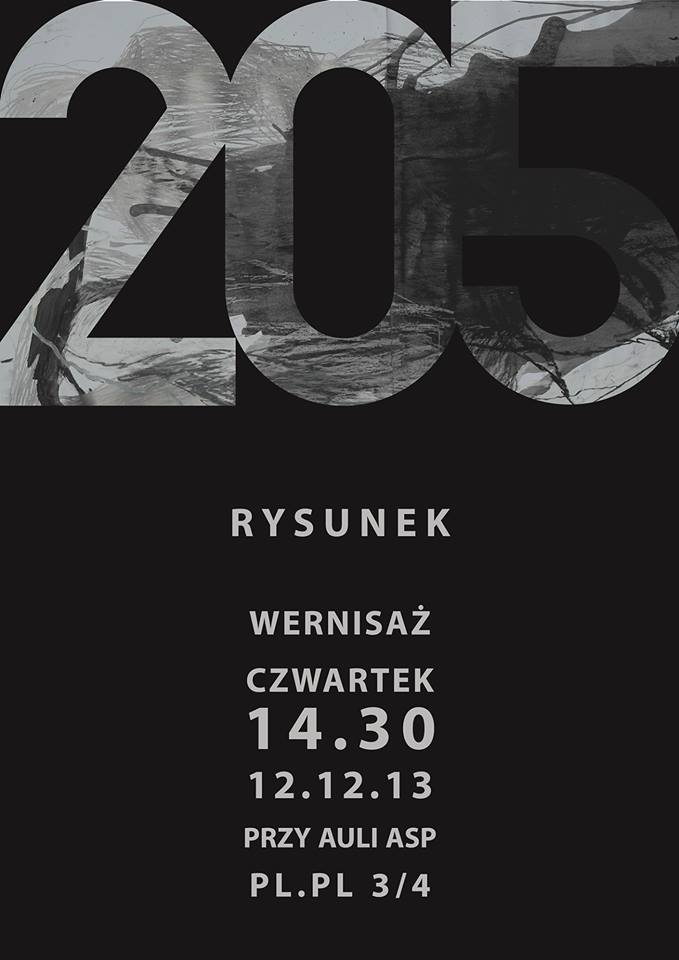 Ad. Bogna Kozera-Radomska i studenci pracowni 205 zapraszają na wernisaż wystawy rysunku, który odbędzie się 12.12.2013 roku o godzinie 14.30 pod aulą Akademii Sztuk Pięknych przy Placu Polskim 3/4