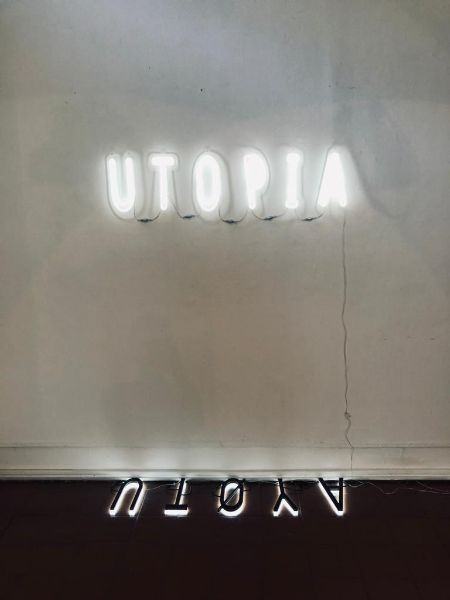 Tytuł jest inspirowany całym obszarem związanym z ideowym ciężarem terminu Utopia. Pojawiające się na wystawie obiekty mają znaczenie symboliczne i są zapisem idei związanych z utopijnym, nierealnym czy raczej oczekiwanym projektowaniem swojego/ lub czyjegoś życia. Każda ideologia, idea która zostaje sfinalizowana niesie ze sobą nieprzewidywalne konsekwencje. W mojej pracy artystycznej obecna jest teza, że utrata idei, kiedy załamuje się „wyobrażenie" może być bardziej bolesna niż jakakolwiek inna strata. Utopia to dla mnie miejsce gdzie idealne miesza się z koszmarem, bo dążenie do doskonałości nosi w sobie zaczątki okropności. Podobnie jak w książce M. Houellebecka gdzie realizacja pragnienia nieśmiertelności i wiecznej młodości nie przynosi oczekiwanego rezultatu.