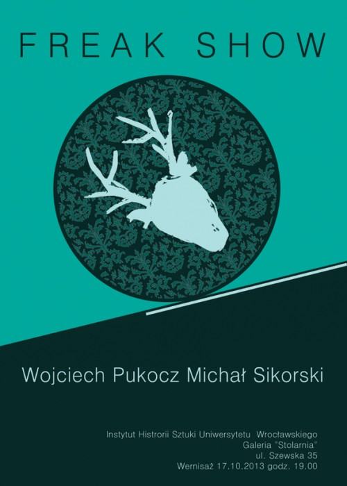 Wojciech Pukocz i Michał Sikorski zapraszają na wystawę FREAK SHOW! wernisaż 17.10. 2013 (czwartek) o godzinie 19.00 w Galerii Stolarnia, Instytut Historii Sztuki Uniwersytetu Wrocławskiego, ul. Szewska 35