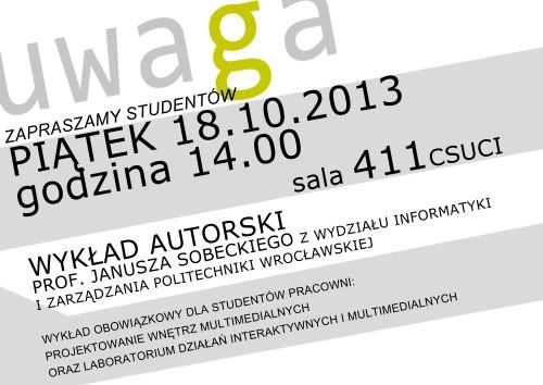 Zapraszamy studentów Architektury Wnętrz oraz wszystkich zainteresowanych na wykład prof. Janusza Sobeckiego z Wydziału Informatyki i Zarządzania Politechniki Wrocławskiej.