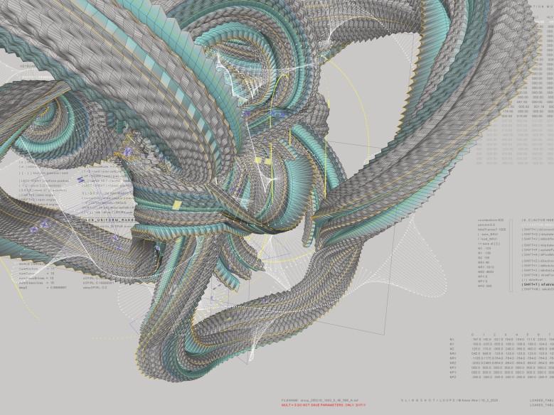 W następstwie tych działań powstał kod, budowany często intuicyjnie, wielokrotnie zbaczający z pierwotnie wyznaczonej drogi, którego opracowywanie poprzedzały rysunkowe analizy projektowanych algorytmów, animowane wizualizacje mechanizmów transformacji, testy oraz mnóstwo błędów, przypadków i efektów ubocznych. Te ostatnie odpowiadają za bardziej ludzki format kodu i w interesujący sposób podkreślają cyfrową biologię powstałych form. Wbrew wielu niedoskonałościom kod wyewoluował w stronę komputerowego narzędzia, wspomagającego algorytmiczne projektowanie moich prac.