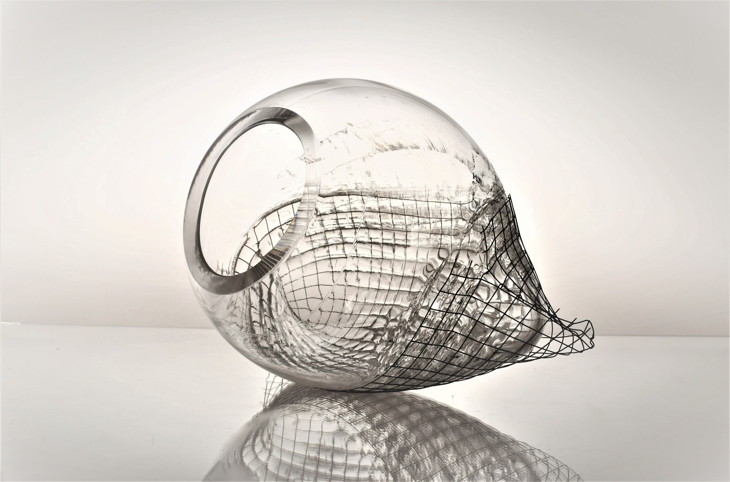 Beata Mak-Sobota eksperymentuje w procesami technologicznym związanym z techniką dmuchania szkła, wykorzystując metalowe siatki do kreowania formy naczynia. Łączy tradycyjne metody rzemieślnicze z materiałami, które przynależne są odległemu obszarowi budownictwa. W jej seriach naczyń Koszyńce i Siatkańce minimalizm przejawia się w ograniczeniu środków wyrazu, rezygnacji z dekoracyjności na rzecz klarowności relacji forma, tworzywo, technologia. Prace prezentowane w ramach wystawy „Industrial glass” w Black Frame przy Concordia Design zostały zrealizowane jako projekt badawczy w Hucie szkła im. prof. Zbigniewa Horbowego Katedry Szkła Wydziału Ceramiki i Szkła Akademii Sztuk Pięknych im. Eugeniusza Gepperta we Wrocławiu.