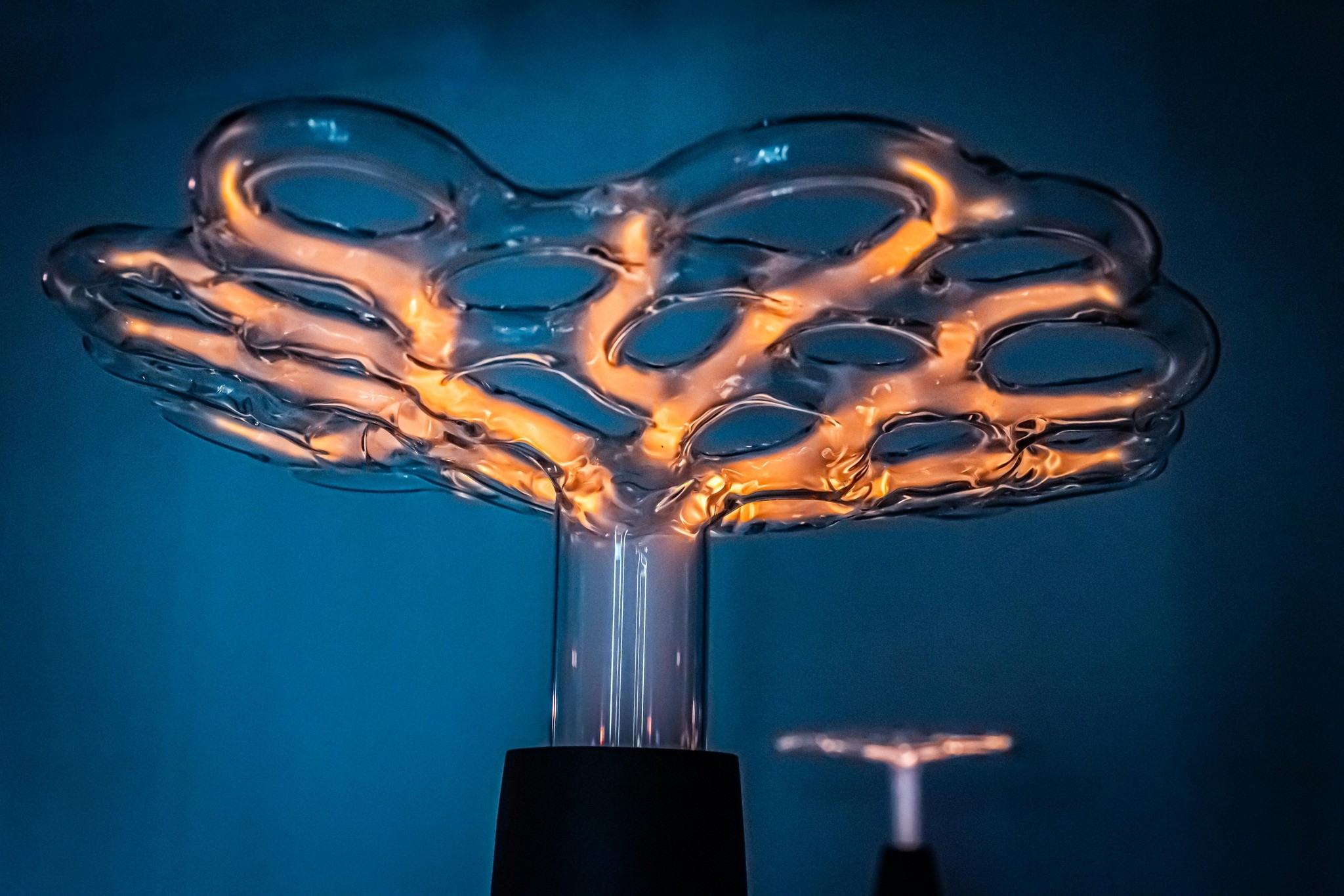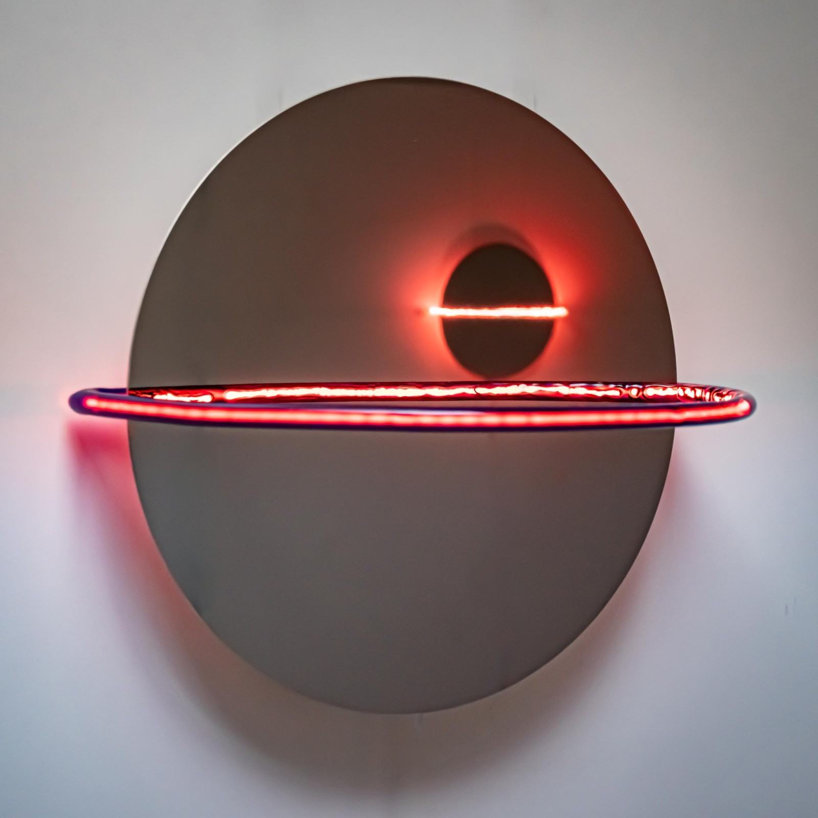 Tytuł wystawy „Egzystencja rozrzedzona” odwołuje się zarówno do fizycznych właściwości prac — wykorzystania gazów szlachetnych w roli świetlnego medium — jak i do emocjonalnego pejzażu współczesnego życia, w którym intensywność doświadczeń często ustępuje miejsca znużeniu, przebodźcowaniu lub wewnętrznemu rozproszeniu. W świecie, który wymaga od człowieka nieustannej gotowości, reakcji i rozwoju, subtelniejsze przeżycia bywają spychane na margines percepcji. Rzeźby Kamili balansują zatem na granicy światła i ciemności, obecności i ulotności, napięcia i ukojenia — stając się wizualnym komentarzem do codziennego stanu zawieszenia.