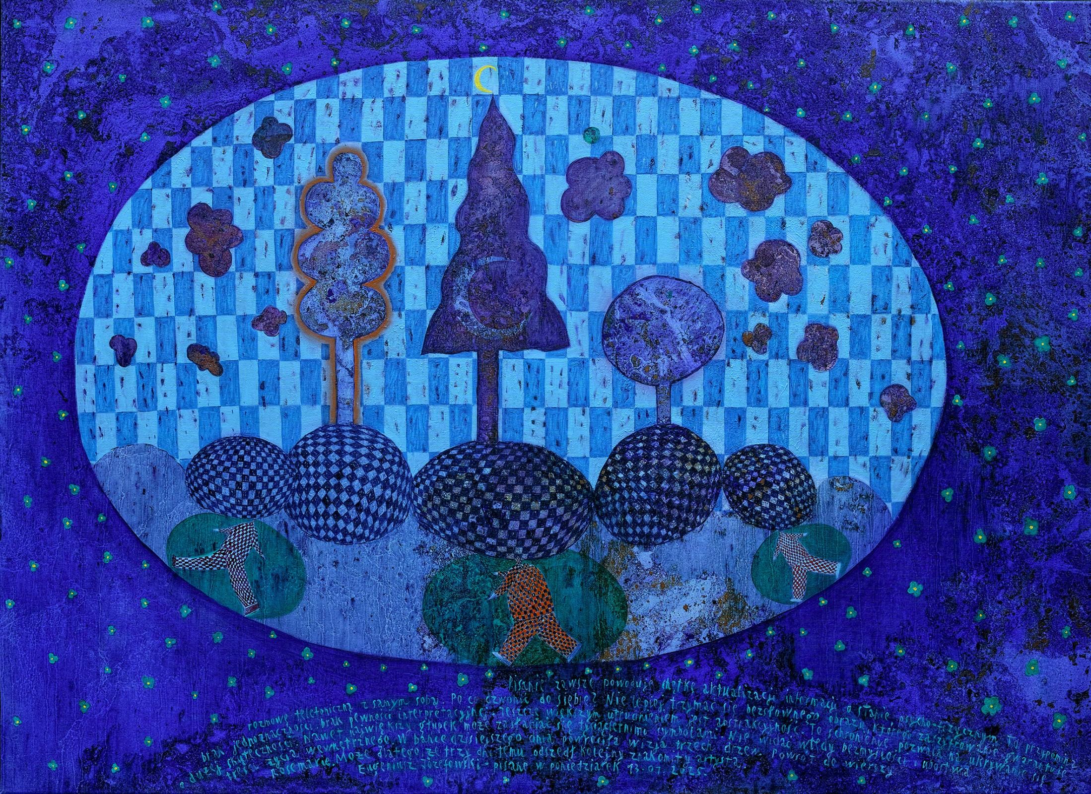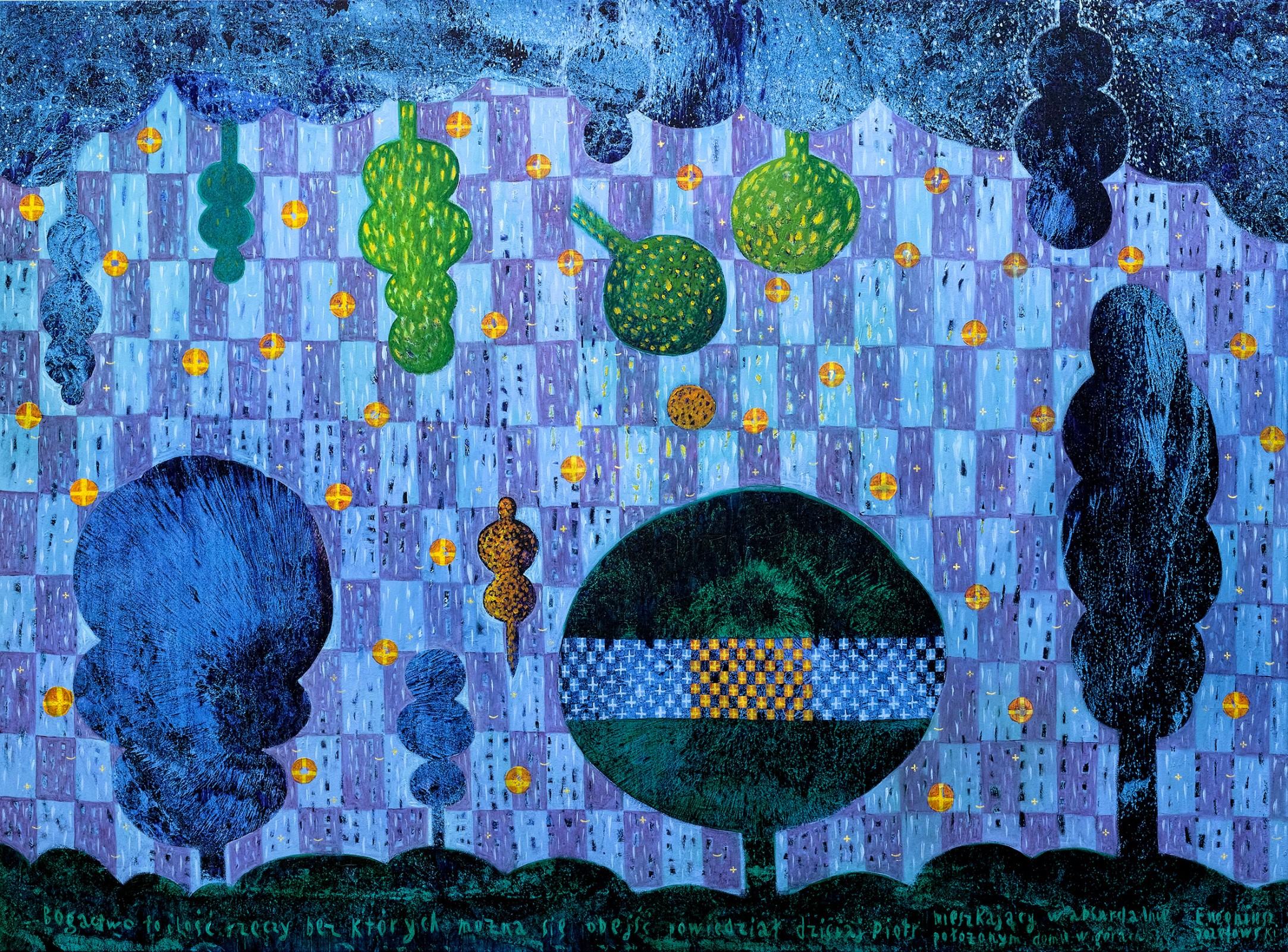 Od 1981 roku uprawiając twórczość wizualną staram się zarejestrować specyfikę mojego sposobu przeżywania rzeczywistości. Pracując często jako edukator sztuki wielokrotnie aranżowałem warsztaty twórcze przy kreacji plastycznej dla ludzi w różnym wieku. Najczęściej proponowałem im aktywność, na którą sam miałbym ochotę. Kiedy skończyłem sześćdziesiąt lat postanowiłem aranżować takie przeżycia tylko z samym sobą. Aktualna dekada mojej aktywności twórczej obfituje w takie przedsięwzięcia. Tytuł wystawy zaczerpnięty jest z ostatniego działania rozpoczętego w lipcu 2024 roku. Zamówiłem 35 podobrazi malarskich w formacie 150 cm na 110 cm i grubości 2 cm. Następnie nabyłem dmuchany basen takiego formatu, bym mógł swobodnie zanurzać podobrazia. Do realizacji tego cyklu prac malarskich użyłem w fazie wstępnej technikę marmoryzacji. Oglądając powstałe efekty napisałem dla siebie treningi wyobrażeniowe służące do spacerów w głąb siebie. Przed rozpoczęciem pracy nad obrazem wychodziłem na taki spacer w wyobraźni celem inspiracji. Dopiero wtedy rozpoczynałem tradycyjne malowanie. Trwało to rok i trzy miesiące. Na wystawie pokażę także prace z innych cykli, odpowiadające tematyce tytułowej deklaracji.