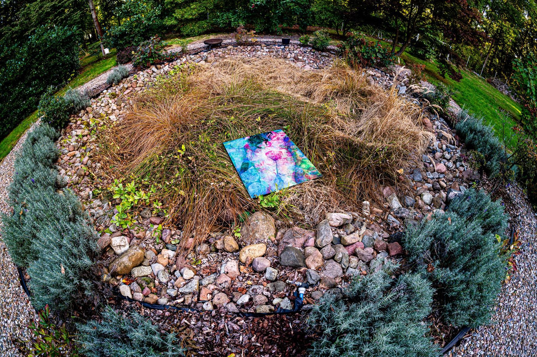 POZORY, to słowo-klucz do zrozumienia cyklu ORGANIX. My widzimy głównie powierzchnię, grę iluzji. Na obrazach piękna, organiczna kompozycja maskuje tematy tabu. To Arkadia z liści, pod którymi kryje się często drastyczna prawda o naszych czasach.