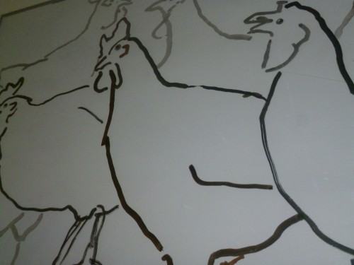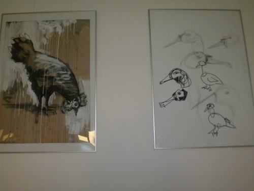 Drawings of domestic fowl made by students from the workshop 207 run by prof. Wojciech Lupa and ass. tutor Jarek Grulkowskiego show a rival diversity of species and forms. Ink and brush, charcoal, crayon and pencil, as well as acylics are the techniques that students use with great ease and naturalness to render the homely beauty of fowl. In the Lingua Gallery, housed in the Department of Foreign Languages, the following students' works are presented: Hilda Hilström, Manfred Bator, Darek Guńka, Aleksandra Zaorska, Jagna Dobesz, W. Świerad, M. Karasińska