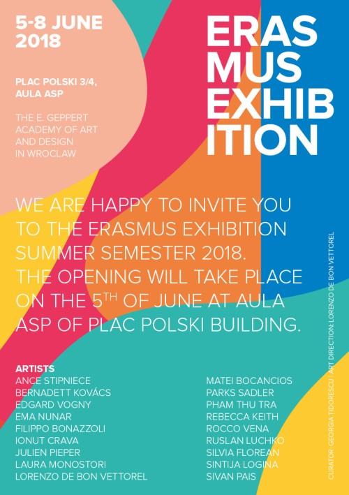 We would like to invite you most cordially to the opening of Erasmus+ students exhibition that will take place on the 5th of June 2018 (Tueasday) at 3 pm in Aula, plac Polski 3/4 building.