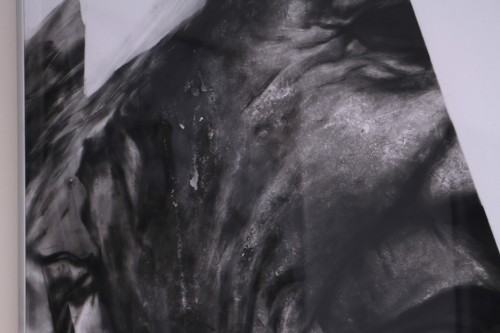 The common feature of their drawings is a workshop skill in the approach to the medium of charcoal and elaborated composition. Monika Polak traces changes in the portrayed characters, shows how the surface of the body and texture changes, collapses and decomposes. She shifts elements and disturbs the surface continuity and stability of figurative forms, thus making faces even more alienated and helpless. Justyna Andrzejewska presents sharp, jagged shapes and lines, creates the depths of space by means of value gradation - her works are landscapes abstracted by fluctuating rhythm; always presented in a vertical format. Paul Baśnik seeks confrontation with the time passed; with Old Masters or old photographs. These known and as if frozen images he transforms by means of cutting, tearing and blurring. Not without reason these works form a cycle called Post Mortem. The students are winners of national and international competitions, among others: International Student Drawing Triennal (Justyna), Arts Confrontation (Monika), International Drawing Competition in Nałęczów (Paweł).