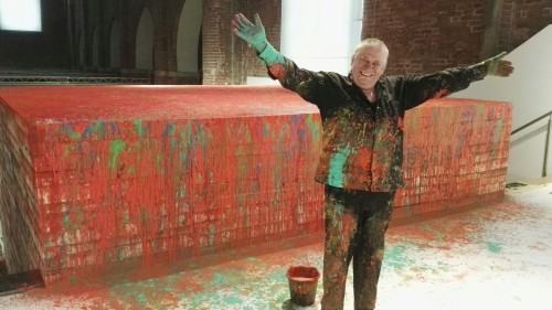 Leon Tarasewicz has been consistently crossing the boundaries of painting for over three decades. His works occupy increasingly more space - he paints on large canvas, annexes walls, floors and elements of existing architecture, transforms structural surfaces into independent painting installations (both indoors and outdoors) made of scaffolding, wood and paint, he makes the viewers trample the pictures or get lost in the mazes of painting installations. Tarasewicz enters the public space, deceives the senses and creates illusions, multiplying his painted structures and their natural surroundings in mirrored reflections. In his recent activities, more and more often he sets the rhythm of reality with light itself, using glowing plastic forms filled with pure color.