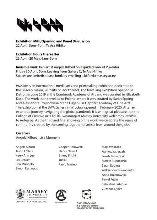 It is sight that dominates the other senses. Not just when we're interacting with art - over every aspect of our lives. It is so important to us that life without it seems impossible to many. How and when do we experience the unseen? To answer this question we have invited educators from art schools in New Zealand, the United States and Poland to create together the Invisible space. We want to remind the viewer that art is never just an image hanging on a museum wall," say curators Sarah Epping and Aleksandra Trojanowska. - It is also an invisible reaction that takes place between the viewer, the artist and their work. This elusive emotion fills the space between the three.