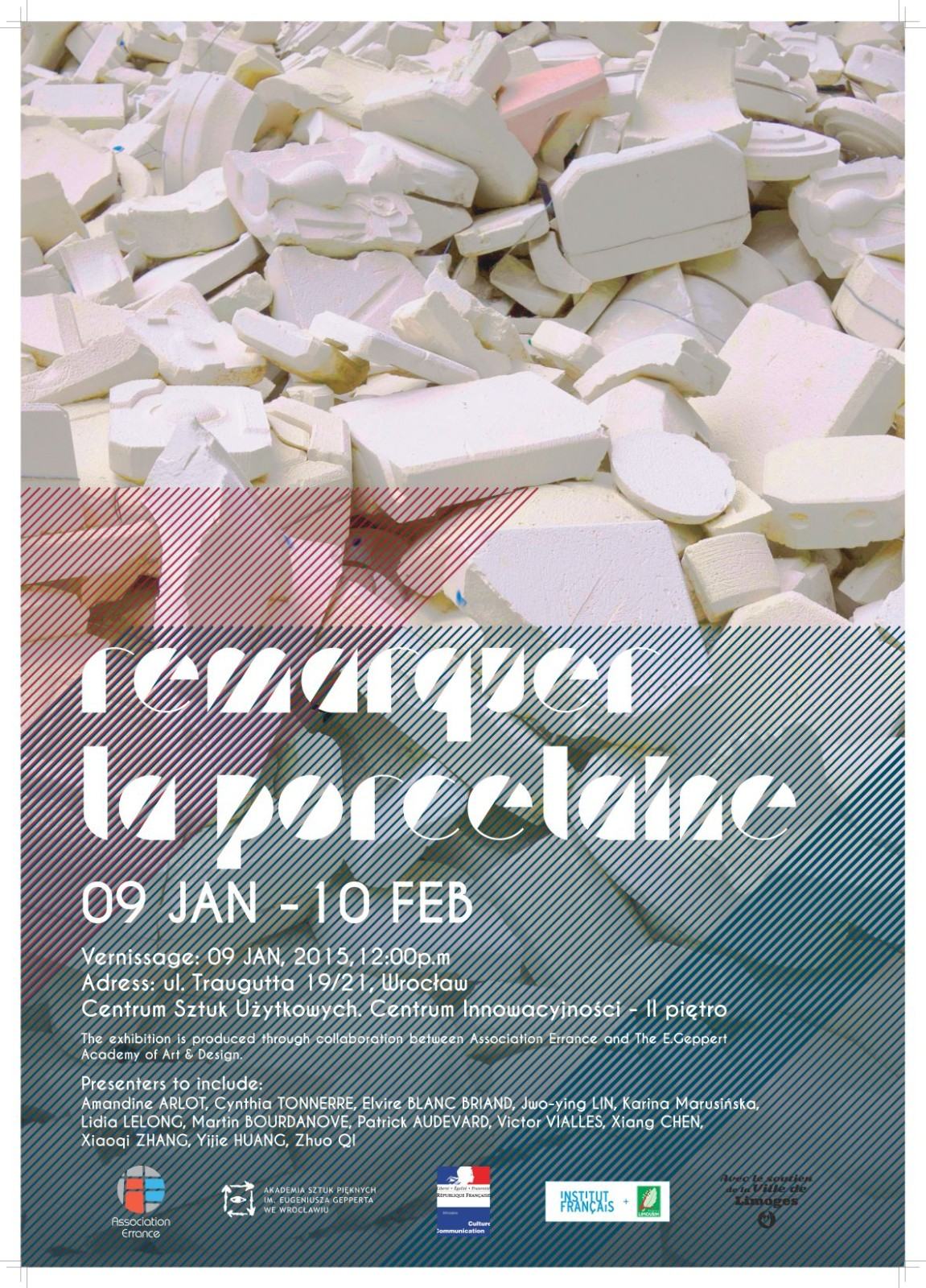 Remarquer la Porcelaine The theme "Remarquer la Porcelaine" introduces us to inspect the porcelain as a traditional material with an innovative view. This art exhibition is expressed in poetic works through design, sculpture, installations and studies of form and material. Many of the works focus on the experiment with materials and new technologies. The works also take up subjects of a socio-political nature, with the material serving as a mirror on society. What does porcelain mean today – and what does the new interest in porcelain tell about the era we live in? what are the new possibilities for the industrial production of porcelain? These works provide an opportunity for contemplation and questioning. The exhibition will give the viewers a look at those opportunities with different ways of working on porcelain. It can be shaped, cast, broken, illustrated, built and combined with new media. With experiment on materials and combination on new technologies with traditional manufacturing technics, each of the exhibited projects involves a particular philosophy inextricably linked to its creation.