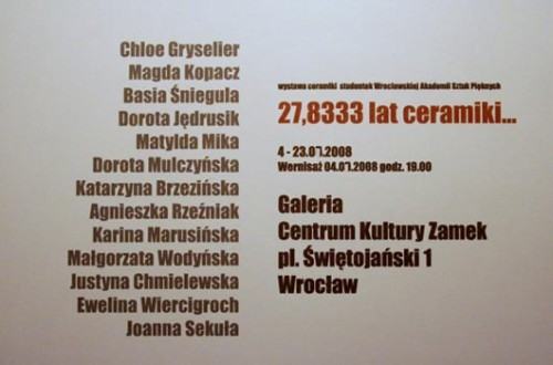 Do końca miesiąca w Galerii Centrum Kultury Zamek pl. Świętojański 1 w Leśnicy oglądać można wystawę studentek, oraz tegorocznych absolwentek Katedry Ceramiki.