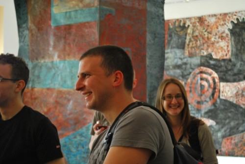 Prace Anki i Huberta wprowadzają nas w świat form organicznych tworzących struktury raz abstrakcyjne, gdyż ukazujące rzeczywistość z pewnego oddalenia, to znów antropomorficzne – dostrzeżone jakby w zbliżeniu. Wy-Śniony przez autorów świat jest zatem jakimś przeolbrzymim układem fraktali, gdzie najmniejsze cząstki przybierają kształt ludzkiej postaci, a powielane w coraz większych i bardziej skomplikowanych układach tworzą niesamowite pejzaże, organiczne struktury. Gama kolorystyczna tych prac jest bardzo bogata, choć zdarzają się tu również obrazy monochromatyczne. Plamy kolorów nie rozlewają się tu swobodnie – podobnie jak kształty podlegają ściśle jakiejś modularnej zasadzie, gdzie każdy fragment struktury wydzielony jest przez kontur, ograniczający jednocześnie przenikanie się barw. Zapraszam na fotorelację z wernisażu, oraz do odwiedzenia wystawy osobiście! Magda Grzybowska fot. Hubert Bujak Magda Grzybowska