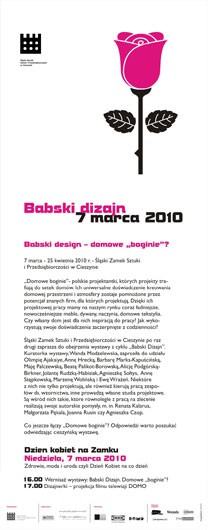 „Domowe boginie”- polskie projektantki, których projekty trafiają do setek domów. Ich uniwersalne doświadczenie kreowania domowej przestrzeni i atmosfery zostaje pomnożone przez potencjał znanych firm, dla których projektują. Dzięki ich projektowej pracy mamy na naszym rynku coraz ładniejsze, nowocześniejsze meble, dywany, naczynia, domowe tekstylia Czy własny dom jest dla nich inspiracją do pracy? Jak wykorzystują swoje doświadczenia zaczerpnięte z codzienności? Kuratorka wystawy, Wanda Modzelewska, zaprosiła do udziału m. in.: Olimpię Ajaknaiye, Annę Hrecką, Barbarę Marks-Kapuścińską, Maję Palczewską, Beatę Palikot-Borowską, Alicję Podgórską-Birkner, Jolantę Rudzką-Habisiak, Agnieszkę Sołtys, Annę Stępkowską, Marzenę Wolińską i Ewę Wrażeń. Niektóre z nich nie tylko projektują, ale również kierują pracą zespołów ds. wzornictwa, inne prowadzą własne studia projektowe. Są wśród nich takie, które równolegle z pracą na zlecenie realizują swoje autorskie pomysły, m. in. Renata Kalarus, Małgorzata Pękala, Joanna Rusin czy Agnieszka Czop. Wernisaż wystawy: Babski Dizajn. Domowe „boginie” w Śląskim Zamku Sztuki i Przedsiębiorczości w Cieszynie w niedzielę 7 marca o 16.00 Anna Stępkowska - absolwentka w 2000 r.