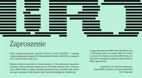 Zapraszamy serdecznie do wzięcia udziału w wystawach i wydarzeniach rozpoczynających Biennale WRO 2021 REVERSO.