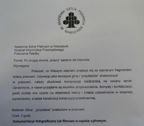 Dnia następnego odbyły się warsztaty z udziałem gości z Warszawy – studentów Wydziału Wzornictwa ASP oraz studentów rzeźby z naszej uczelni. Warsztaty przygotował i poprowadził prof. Jerzy Mizera – rzeźbiarz i projektant, prowadzący pracownię rzeźby na wspomnianym Wydziale Wzornictwa warszawskiej ASP. Konferencja „Pracownia rzeźby” była trzecią edycją cyklu „Terytoria rzeźby”. Wkrótce ukaże się wydawnictwo podsumowujące tegoroczne spotkanie. fot. Andrzej Kosowski Magda Grzybowska