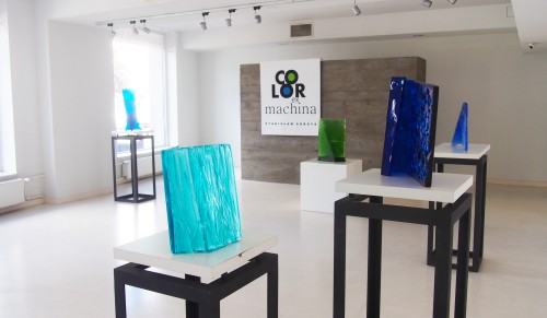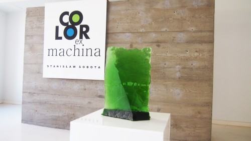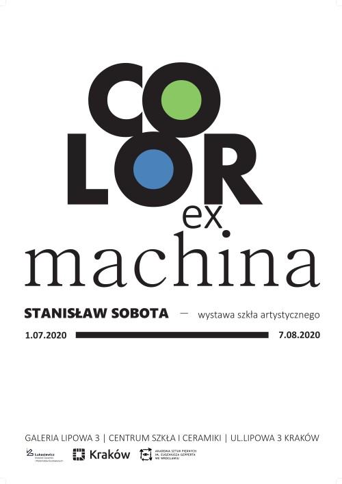 Kolor to wrażenie światła, źródło pasywnej energii słonecznej. Ta cecha materii, bryła i jej cechy, rzeźbiarskość obiektu oraz walor szklanego tworzywa są polem eksperymentu Stanisława Soboty. Rzeźba w jego wykonaniu, poprzez zastosowanie szkła i jego interakcje ze światłem, dąży w sposób szczególny do odsłonięcia wnętrza formy, która ukryta jest pod wizualnie dostępną powierzchnią rzeczy. Proces badania współdziałania transparentnej materii i światła, który prowadzi realizując kolejne cykle prac, odkrywa nowe obszary trójwymiarowości. Autor w swych obiektach analizuje też na nowo znaczenie siły gestu, kierunków, kątów, rytmów i napięć podstawowych. Syntetyzując wybrane motywy opracowuje formę tak, by jej siłą był kierunek od zewnątrz w głąb. Tytułowy color ex machina powołuje do istnienia przez refleksy światła na szkle dynamizm, energię i gradient, który "zainspirowany" naturą światła przydaje obiektom wyjątkowej tonacji barwnej. Ekspresja kształtu i faktury, wzmocniona oddziaływaniem prześwietlonego koloru sprawia, że rzeźby ze szkła Stanisława Soboty, posiadając walor autentyzmu, emanują wyrazistością kształtu i energią barwy.