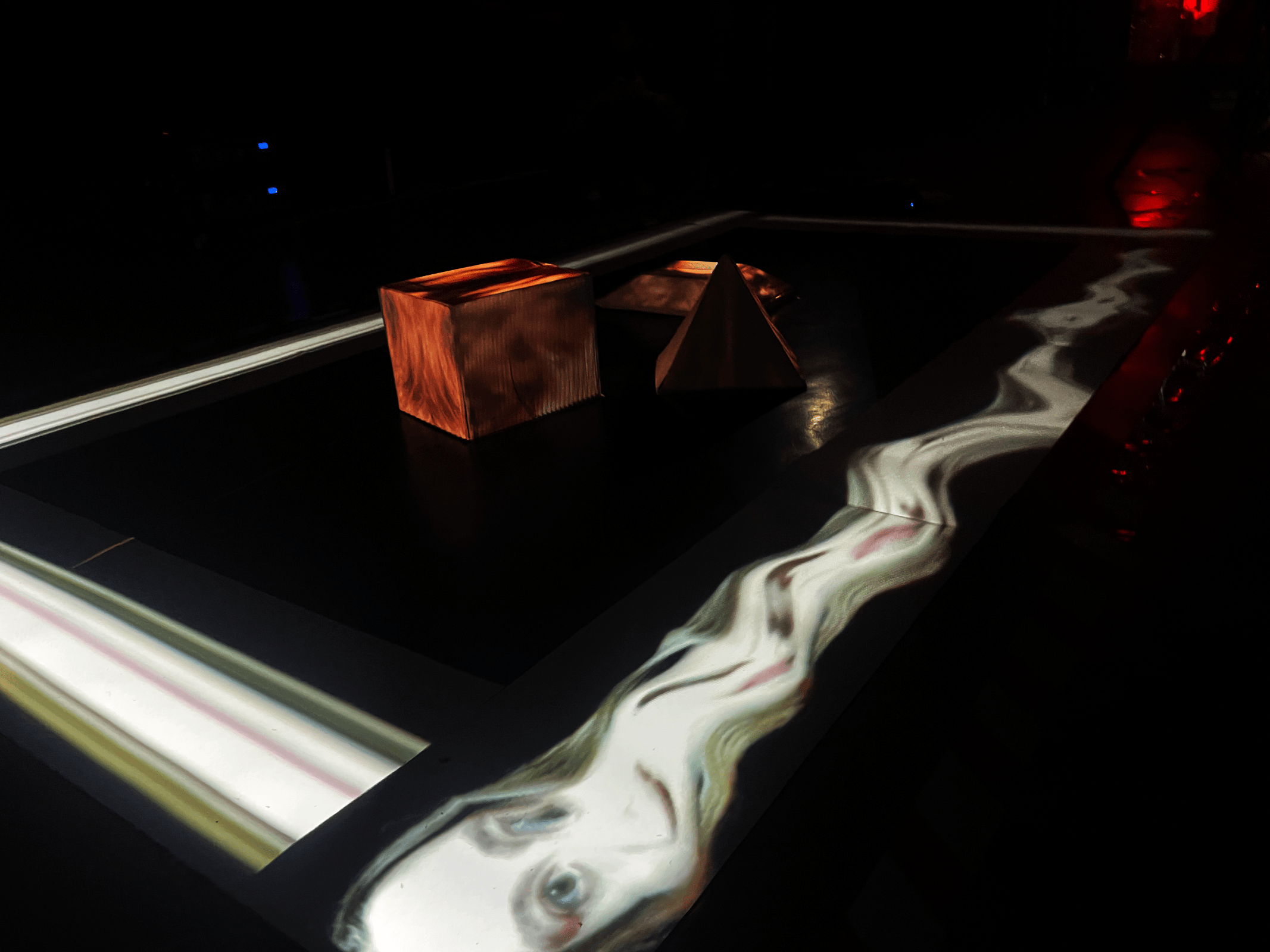 „Przestrzeń – Jednostka" to interaktywna instalacja, która pozwala odbiorcy doświadczać obecności. Świetlne punkty to ślad działań jednostki. Będące w ciągłym ruchu ukazują proces przekształcania przestrzeni poprzez ludzką aktywność. Instalacja opiera się na czułym systemie reagującym na obecność widza. W tym doświadczeniu ujawniają się dwa wymiary Przestrzeni: fizyczny i symboliczny. Zawieszone ekrany nadają jej architektoniczny porządek, organizując otoczenie, a ciało widza staje się integralnym elementem kompozycji. Projekcja – niematerialna i zmienna – to znaczenia, emocje i informacje krążące pomiędzy bytami. Reaktywny system działa jak sieciowe algorytmy: odpowiada na zachowania użytkownika, tworząc spersonalizowane układy, interpretacje i nowe sposoby odczytywania przestrzeni.