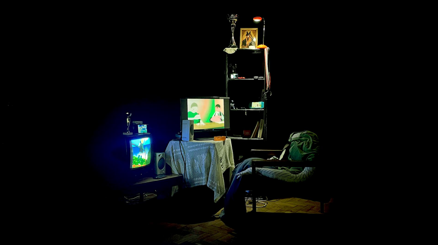 Okna zaadaptowane jako ekrany, zakrzywiają percepcję tego, co jest realnie widoczne. Przenikają się, jednocześnie pozostają niezależne, mogą istnieć oddzielnie. Towarzyszący dźwięk podkreśla to zaburzenie. Wchodząc w ich przestrzeń, zakłócamy dotychczasowe funkcjonowanie obiektów, jednak w ten sposób stajemy się częścią tego środowiska.