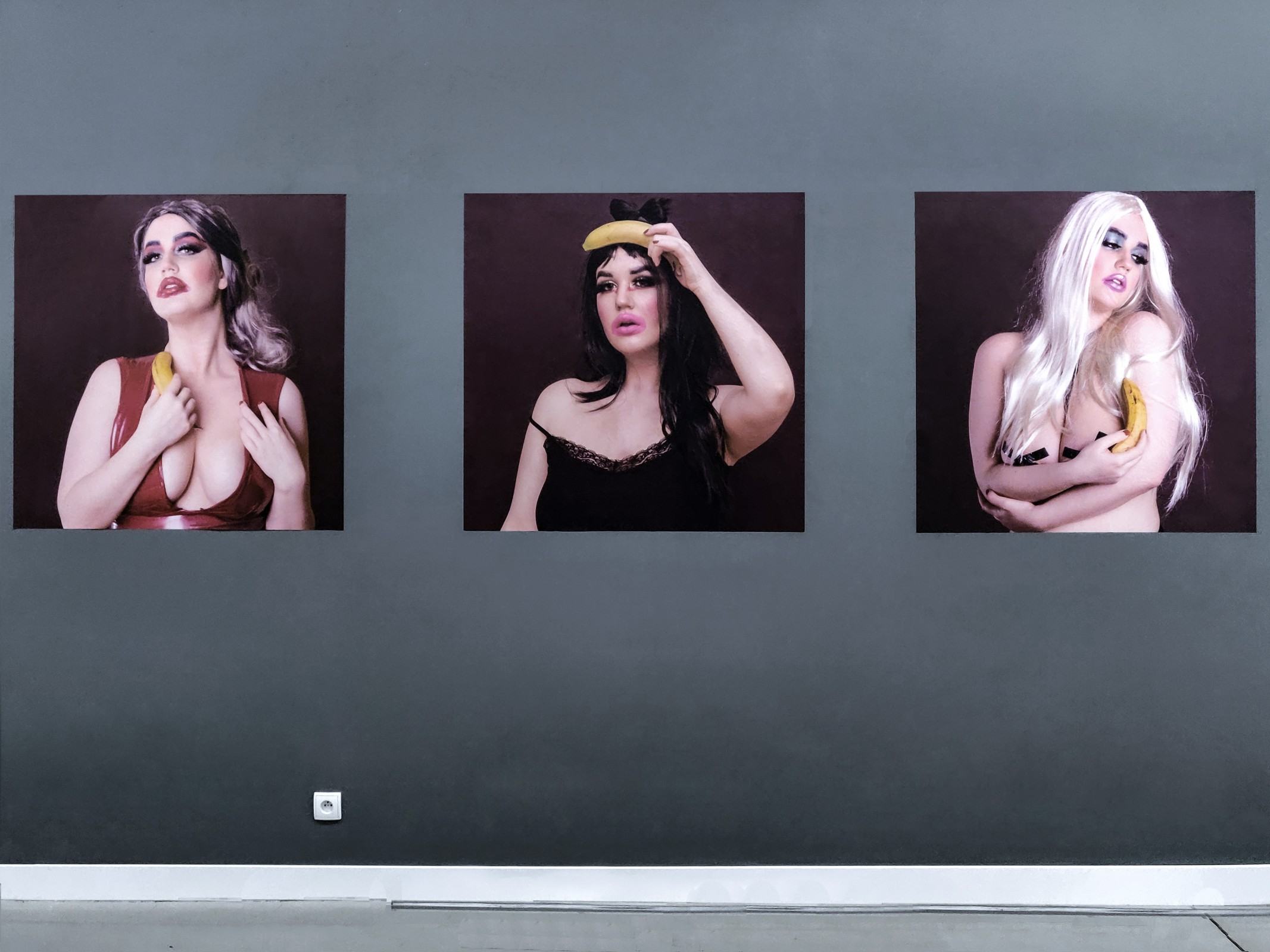 równocześnie bohaterem prac jest banan (inspiracja realizacjami Natalii LL). Stwarzając przerysowaną kreację kobiety, autorka pragnie przeciwstawić się uprzedmiotowieniu