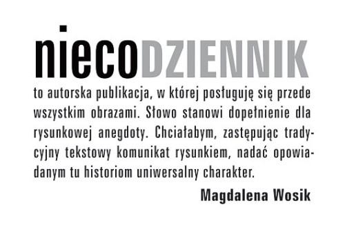 Na tej ekspozycji zobaczymy dwa autorskie pisma: niecoDZIENNIK i QBEK (obejrzeć je można także na:) http://issuu.com/magdalena_wosik/docs/qbek Magda Wosik