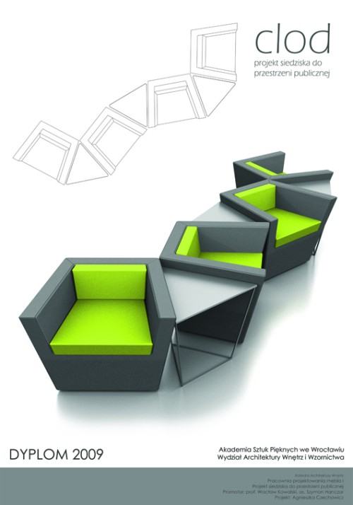 Tematem pracy dyplomowej był projekt siedziska do przestrzeni publicznej "Clod".