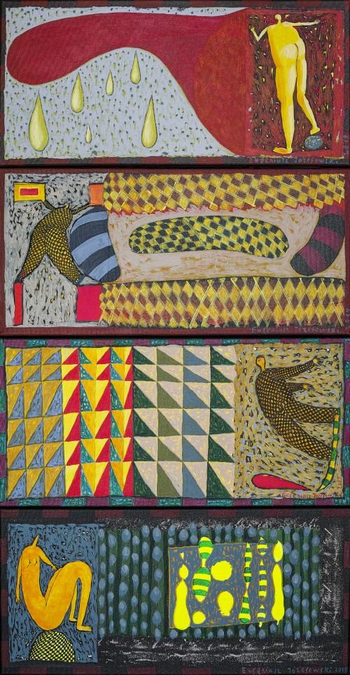 Rok 1982 był pełen przewartościowań. Trauma tego okresu ujawniła mi potrzebę poszukiwania innego sposobu obrazowania. Pewnego dnia, idąc pieszo do pracy, stanąłem pod drzewem rosnącym na wale przy moście Trzebnickim (będącym motywem w późniejszych grafikach i rysunkach) i powziąłem postanowienie dotyczące dalszych poszukiwań artystycznych. Potrzebowałem formy, która wyraziłaby charakterystyczny dla mnie sposób przeżywania rzeczywistości, ukrywając jednocześnie moje doświadczenia – odmiany kodu, którego konotacje byłyby bliższe moim odczuciom, temu, co mnie spotyka. Dotychczasowy sposób wizualnego przekazu wydał mi się nieodpowiedni, nieadekwatny do wizualizowania wówczas doświadczanych stanów. W tym czasie powołałem postać klauna i motyw kratki jako najbardziej rozpoznawalne dla mojego obrazowania wizualnego.
