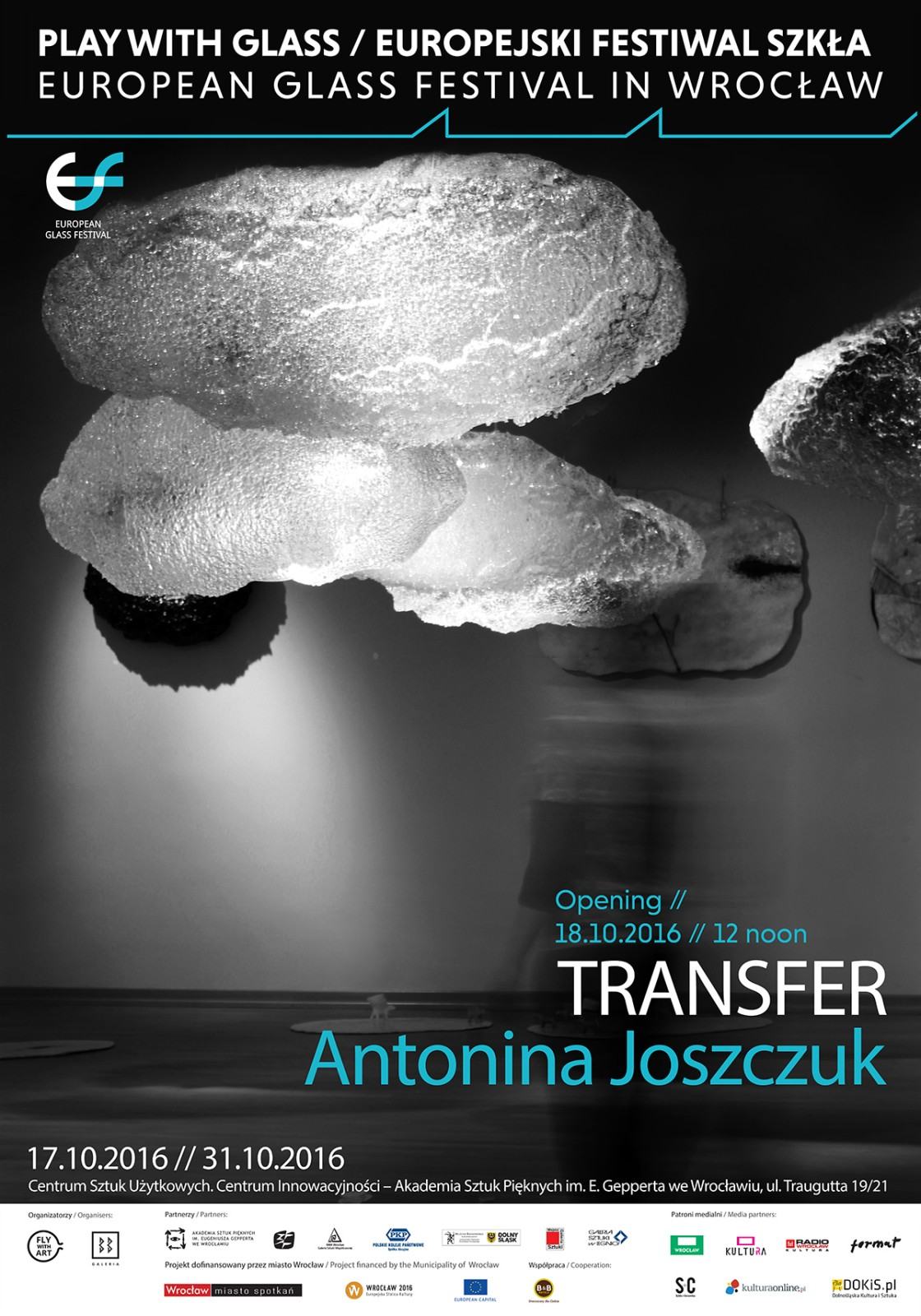 18.10.2016 – wtorek10.00 – 15.00 – seminarium z udziałem artystów zaproszonych na wystawę główną "Dr Jekyll and Mrs Hyde" – Centrum Sztuk Użytkowych. Centrum Innowacyjności, IV piętro, sala 410 – Akademia Sztuk Pięknych im. E. Gepperta we Wrocławiu, ul. Traugutta 19/21; wstęp wolny12.00 – 13.00 – przerwa kawowa12.00 – otwarcie wystawy „Transfer" – Antonina Joszczuk – Centrum Sztuk Użytkowych. Centrum Innowacyjności – Akademia Sztuk Pięknych, ul. Traugutta 19/21wystawa czynna: 17.10.2016 – 31.10.2016