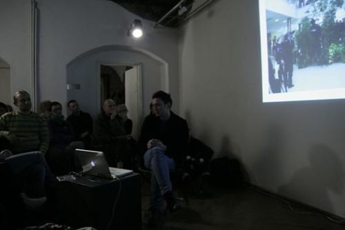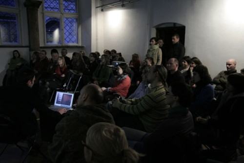 "Chęć jak najbardziej płynnego wkomponowania i wpisania się w zastaną rzeczywistość przy jednoczesnym minimalnym jej zachwianiu to cechy, które powodują że przy dużym współczynniku koherencji z całą infrastrukturą miejską, można całkowicie zmienić dotychczasowe spojrzenie na otaczającą nas aglomerację. Tym samym pobudzić nas do zadania sobie wielu pytań związanych ze sposobem funkcjonowania społeczeństwa oraz sprowokować do refleksji nad pewnymi zmianami, jakie w nim zachodzą. " Maciej Kurak Szczyt Formy to cykl otwartych spotkań autorskich z artystami zajmującymi się szeroko pojętymi działaniami przestrzennymi. Jest wspólną inicjatywą Koła Naukowego Forma przy Katedrze Rzeźby ASP we Wrocławiu oraz Galerii Entropia. Spotkania pomyślane są jako autorskie prezentacje dające artystom możliwość bezpośredniej prezentacji swojej sztuki bez żadnej mediacji, studentom zaś [i reszcie publiczności] osobistego kontaktu z artystami, a także zapoznania się z żywym procesem twórczym czy problemami istnienia na współczesnym rynku sztuki koordynacja cyklu: Karolina Freino Maciej Kurak. W 1998 r. ukończył poznańską ASP na Wydziale Malarstwa, Grafiki i Rzeźby. W 2003 r. obronił doktorat. Od 2004 r. współtworzy grupę artystyczną Wunderteam, ale pracuje też indywidualnie. Zdobywca Paszportu Polityki ze stycznia b.r. za: "oryginalne artystyczne gry z przestrzenią oraz ciekawe poszukiwania nowych miejsc dla sztuki. Za twórczy dyskurs z architekturą i doskonałe łączenie ironicznych form z ważkimi społecznymi treściami" Spotkanie prowadziła Dominika Łabądź, studentka V roku rzeźby. Zdjęcia - Andrzej Rerak