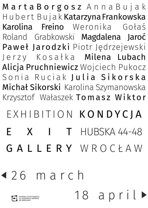 W nowej przestrzeni wystawienniczej ASP - w Galerii EXIT mieszczącej się Browarze Mieszczańskim we Wrocławiu - prezentowana jest wystawa "Kondycja".