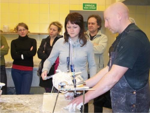 Mieliśmy okazje wysłuchać wykładu Dagmar Hrabankovej i zapoznać się z pracą warsztatową Jakuba Berdycha. Był to pokaz pokazujący tajniki warsztatowe artysty: przygotowanie form do topienia szkła oraz niezwykle interesujący proces toczenia modeli.