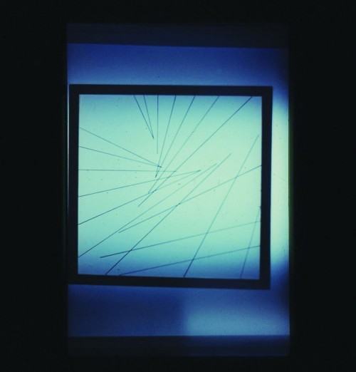 Gosia Kościelak w 1998 roku na tle swojej pracy z serii „Luki w pamięci", Chicago USA
